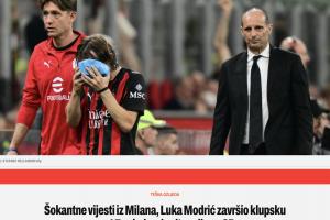 米兰34轮后排名意甲第三,领先第五科莫6分,球队接下来将在缺少莫德里奇的情况下争夺欧冠席位。