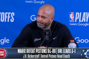 jrs直播网4月28日讯 NBA季后赛,活塞88-94不敌魔术,大比分1-3落后,赛后JB·比克斯塔夫接受了媒体采访,以下为采访全文。