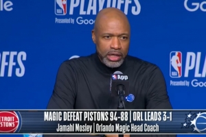jrs直播网4月28日讯 NBA季后赛首轮G4,魔术94-88力克活塞,系列赛大比分3-1领先,魔术主帅莫斯利赛后接受了媒体采访,以下为完整版采访内容。