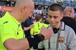 24直播网4月28日讯 据《阿斯报》报道,在波兰的一场活动中,一名巴萨球迷友好地走近裁判马齐尼亚克,“指责”他上赛季巴萨对阵国际米兰的欧冠半决赛次回合比赛中的执法表现。