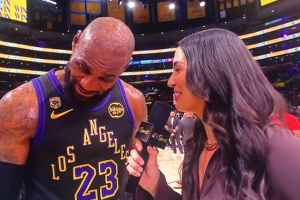 24直播网4月22日讯 NBA季后赛,湖人在主场以101-94击败火箭,詹姆斯赛后在场边接受了媒体采访,以下为完整采访内容。