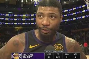 24直播网4月22日讯 NBA季后赛,湖人在主场以101-94击败火箭,大比分2-0领先。赛后斯玛特在场边接受了媒体采访,以下为采访全文。