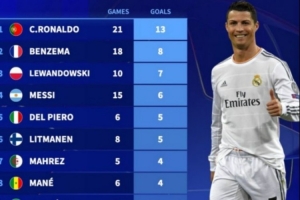 上一篇: 欧冠改制后半决赛进球榜:C罗13球居首,本泽马、莱万、梅西在列