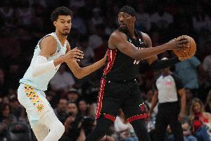 24直播网4月29日讯 热火总裁帕特·莱利参加赛季总结会,谈到了交易阿德巴约的可能。