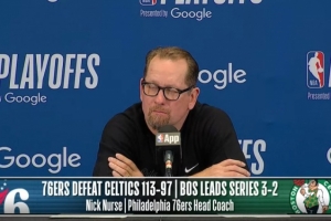 jrs直播网4月29日讯 首轮系列赛G5,76人客场力克凯尔特人,将大比分追至2-3,76人主帅尼克·纳斯赛后接受了媒体采访,以下为完整采访内容。