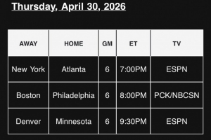 随后NBA官方公布了北京时间5月1日的赛程安排,具体如下: