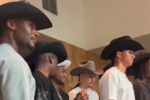 马刺官方晒出一段有爱视频,球员们都戴好牛仔帽,一起迎接凯尔登·约翰逊,给了后者大大的惊喜。