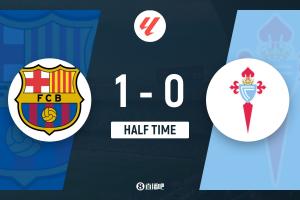 半场-巴萨暂1-0塞尔塔 亚马尔点射后伤退坎塞洛伤退比赛一度中断