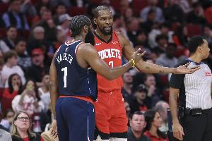 我真心觉得这些家伙之所以还能打出这些数据,是因为他们仍然是球队的绝对核心,对吧?球权依然在他们手里。他们并没有沦为角色球员。凯文·杜兰特没有改变他的角色。科怀·伦纳德没有改变他的角色。保罗·乔治没有改变他的角色……还有詹姆斯·哈登。在NBA,只要球权在你手上,你就依然能打出华丽的数据。这并不是说你已经失去了比赛的能力。不,你手里还有球。你可能确实慢了一些,但你依然知道该怎么打比赛。”