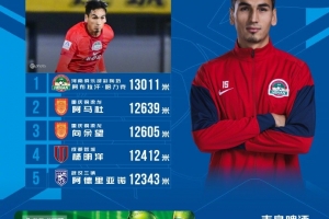 jrs直播网4月23日讯 中超联赛官方公布了第7轮跑动距离榜,河南队的阿布拉汗位居榜首。