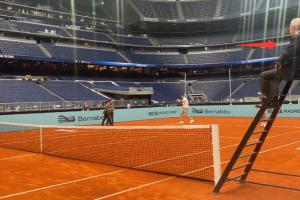 jrs直播网04月23日讯 马德里大师赛进行期间,一场别开生面的网球友谊赛在伯纳乌展开,对阵双方是辛纳+贝林厄姆vs库尔图瓦+纳达尔,担任主裁判的是皇马主席弗洛伦蒂诺。
