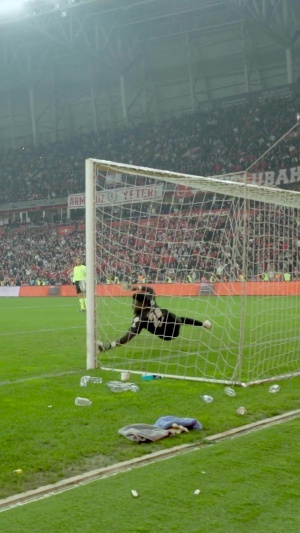24直播网04月24日讯 土杯四分之一决赛,特拉布宗体育客场0-0点球大战3-1淘汰萨姆松体育晋级半决赛。曼联旧将奥纳纳成为全场绝对主角,他在点球大战中展现出统治力,连续扑出了萨姆松体育3粒点球。