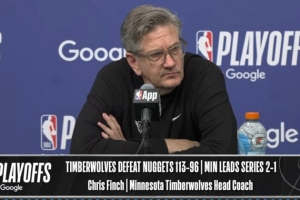 24直播网4月24日讯 NBA季后赛首轮,森林狼主场113比96击败掘金,大比分2比1领先。赛后芬奇接受了媒体采访,以下为采访全文。