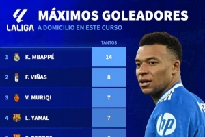 上一篇: 本赛季西甲客场进球榜:姆巴佩14球居首,亚马尔7球、莱万6球