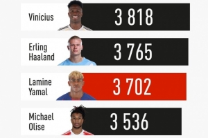 24直播网4月24日讯 巴萨边锋亚马尔在对阵塞尔塔的比赛中受伤,预计赛季报销,据《队报》统计,18岁亚马尔是本赛季五大联赛出场时间第三多的前锋。