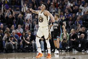 桑托斯最近1个月在勇士队的表现愈发亮眼,最近12场比赛他11场上双(其中一场9分),场均能够贡献15分5.6板3.8助1.6断,投篮命中率58.8%,三分命中率43.1%。