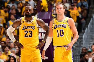 湖人赛前公布了本场比赛首发阵容,詹姆斯、肯纳德、斯玛特、八村塁、艾顿。