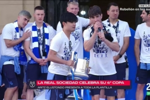 皇家社会举办了夺冠游行和庆典,久保建英在庆祝活动中用西语发言,他说道:“我不太喜欢多说话,我更喜欢在球场上用表现说话。不过,我觉得今天是我人生中最美好的一天,我们要好好狂欢一番,感谢大家。”