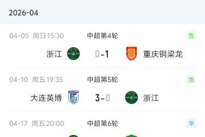 24直播网04月25日讯 进入4月以来,浙江队连续5场中超比赛1平4负,且一球未进。
