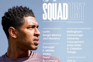 24直播网4月21日讯 北京时间明天凌晨,皇马将在西甲第33轮比赛中主场对阵阿拉维斯,皇马公布了此役的球员名单。19岁门将哈维尔·纳瓦罗入选,他帮助皇马U19赢得欧青联冠军,阿森西奥继续缺席。