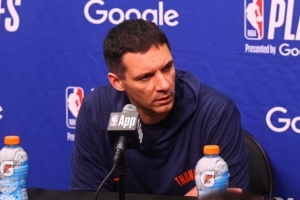 24直播网4月26日讯 NBA季后赛首轮G3,雷霆121-109力克太阳,大比分3-0领先,赛后戴格诺特接受了媒体采访,以下为采访全文。